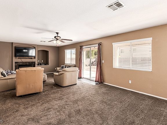 The search is finally over! This stunning 5-bedroom home welcomes you with a 3-car garage and a low-maintenance front yard. Discover a captivating living room with soaring vaulted ceilings, abundant natural lighting, blinds, a soothing palette, and attractive wood-look flooring. You'll also find an elegant dry bar for entertaining. Gather loved ones in the dedicated family room, complete with sliding door access to the backyard and an inviting fireplace for intimate moments. The impeccable kitchen features a breakfast nook, granite counters, ample wood cabinetry, recessed lighting, a mosaic tile backsplash, stainless steel appliances, a pantry, and a two-tier island with a breakfast bar. The serene primary bedroom showcases soft carpeting, a spacious walk-in closet, and an ensuite with double sinks and a soaking tub for ultimate relaxation. Imagine enchanting evenings in the backyard, which offers a covered patio and tons of space for crafting your dream oasis. Make this gem yours now!