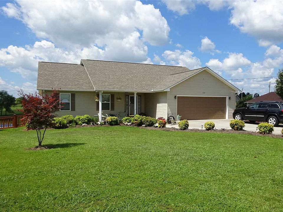 Lovely home with open floor plan. Nice covered front porch and covered decking in back that goes the length of the house with area that is extended out. Plenty of room for entertaining. 2 car garage on main level. Extra large garage in basement. Detached garage has elec. and water with a built in loft. Extremely well maintained home. Plenty of storage. Basement plumbed for bath and easily finished. Large Yard is completely fenced in back and edged with trees and rose bushes. Garden area. Pool with decking and landscaping. Roof, hot water heater, water softener all recent. Flag pole stays. All kitchen appliances stay. 2 driveways. This home is move in ready with neutral colors and great floor plan.