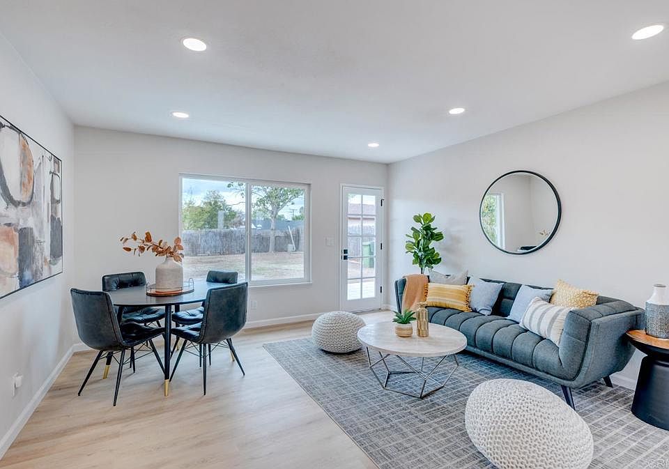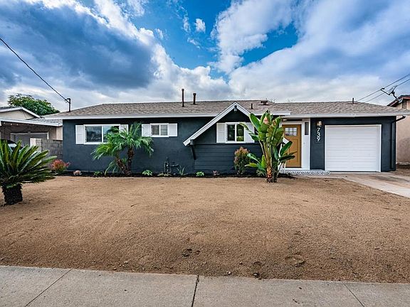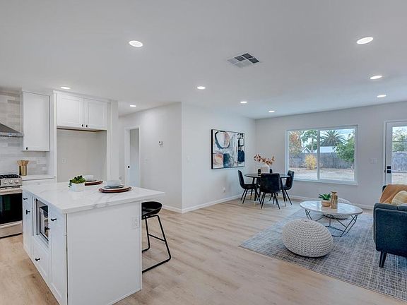 Recently renovated home in Escondido looking for its new owner. Through the front door is an open space that combines the kitchen living and dining room. Kitchen offers new shaker cabinets, quartz counters, upgraded fixtures and stainless steel appliances. This home has been freshly painted inside and out and upgraded luxury vinyl plank flooring can be found throughout. Bathroom has been renovated and brought up to today's style with a gray octagonal tile floor, new white shaker vanity, modern fixtures and white subway tile shower surround. Garage features epoxy flooring and laundry hook ups. The house itself is situated towards the front of the lot giving you a large flat backyard. The neutral colors and accents of light oak gives this home an organic modern feel. Come see it today!
