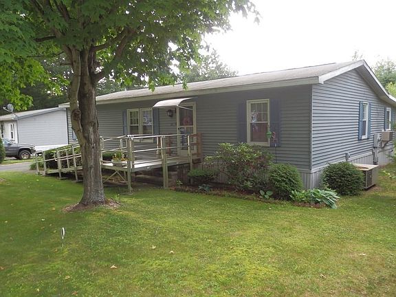 This manufactured home in a 55+ community has it all, 3 bedrooms w/2 full baths, central air, 4 season 24x11 enclosed porch with heat, a 1 car carport and all on a cul de sac! Newer rugs, new wall AC in the sunroom, new bathroom fixtures and plumbing in the master bedroom, new water heater installed in 2016, new electric thermostat and the entire house was re-insulated in 2016! There is a propane heater in the sunroom ready to be hooked up and used for additional heat in the winter months. The 1 car carport that leads to a covered deck and directly into the house keeps you dry on those rainy days and the private backyard has a shed for storage. Call today for a showing!