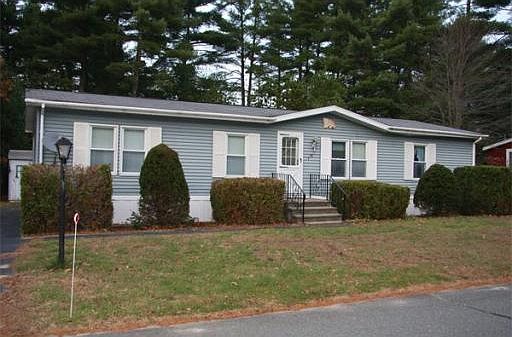 Spacious and sunny best describes this 3 bedroom, 2 bath, double wide mobile home at River Bend Woods. This home features a nice open floor plan with vaulted ceilings in the living room, kitchen and dining areas, fairly new refrigerator, stove and dishwasher included, large master bedroom with shower in bath, all 3 bedrooms have ceiling lights and walk in closets. This home has central AC and washer/dryer hook ups. There is also an enclosed 3 season porch, shed and fenced in garden area. This over 55 park features a community club house with recreation rooms and an indoor pool for residence use. Town bus transit is available at your door step. Ready for new owners. Come enjoy the convenience of this beautiful park and home. Some updating may be needed and is reflected in asking price.