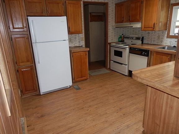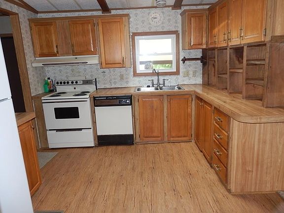 Nicely kept manufactured home in beautiful Riverbend Woods! This 1987 Skyline has newer replacement windows and roof and brand new hot water tank. Master bedroom has a master bath and the two spare bedrooms and second bath have all new laminate wood floor, walls, wainscoting and paint! The kitchen and pantry boasts laminate floors also! This is a corner lot so you have 2 paved driveways and a newer carport with a covered entrance to the back door. There are 2 sheds on the property, a 11x11 deck and the gutters have just been replaced. Come take a look today! This is a 55+ community, park rent is $625/month and includes taxes, garbage pick up, septic, clubhouse with an indoor pool and privately maintained roads!