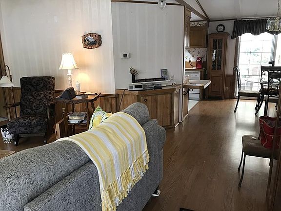Private Cul-De-Sac with hemlocks all around this home sits just steps from Rec House with indoor pool and hot tub. Master suite with new shower, large linen closet and walk in closet, kitchen had lots of counter space and a pantry. The living room has vaulted ceiling and new flooring, along with the dining room looking at the covered deck. The family room has a wood stove and fireplace, large room for company, Two bedrooms are off this room with another full bath. Two compartment shed, with wood storage behind. Lovely landscaping in the rear, with mulch and stones for your fire pit. This is an over 55 Adult Community, buyers need park approval to purchase, The park rent is $667.00 a month.