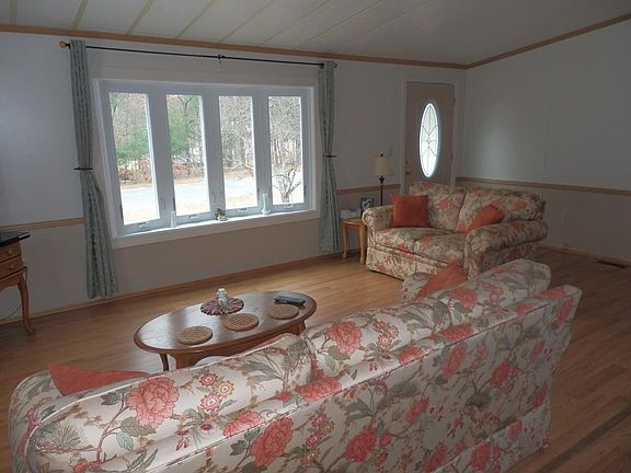 Beautifully kept manufactured home located in the 55+ community of Millers Woods. Roof is about 6 years old, hot water heater 6 years old, newly renovated front door entrance and new front bay window! Open concept living with wood laminate floors, 2 bedrooms(2nd bedroom is wall-wall carpet), and a newer walk in shower! Large deck off the laundry room door to the backyard, oil heat and central air conditioning! Seller will leave a brand new couch and loveseat, brand new full size bed w/mattresses, new microwave, washer/dryer, 2 TV stands, kitchen table and curtains! Enjoy the clubhouse with seasonal indoor pool, park rent includes taxes, garbage pick up and road maintenance...not a drive-by, call today!