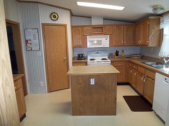 Peaceful adult community at Riverbend Woods with indoor swimming pool, community room and bocce courts. This spacious home offers 3 bedrooms with master bath with separate stall shower and full bath/shower combo, den with built ins, open floor plan in kitchen with center island and big pantry, dining room and living room. 3 season enclosed porch leads to a small deck and back yard with a new 9x8 shed. New laminate floors in the living room, dining room and hallway with vaulted ceilings. Separate laundry room, double carport with another attached storage shed. Park fee includes water, sewer, taxes, trash removal, club house and indoor pool. Central air for your summer convenience.