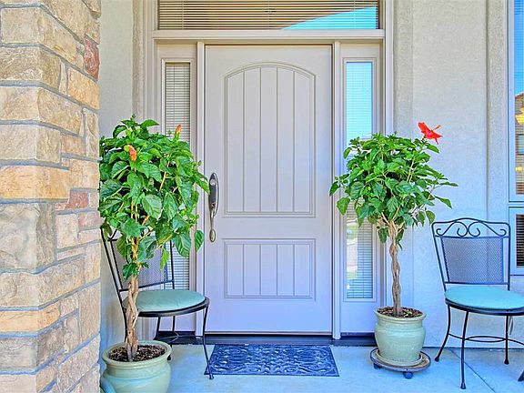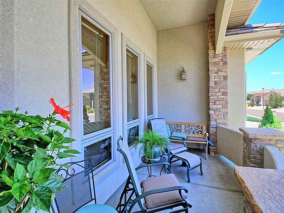 Custom, all stucco home with high-end finishes throughout, including hardwood flooring with solid knotty Alder wood doors, trim and baseboards, hand-textured walls, and Integrity windows. Three bedrooms (split bedroom design) plus den/office. The kitchen is spacious with beautiful solid granite counters,coordinated tile backsplash, custom cabinetry (Osburn Cabinets), and stainless appliances and includes breakfast bar and eating area. Living room has pellet insert in the stone fireplace surround and adjoins the formal dining room. Roof is flat tile for lifetime of ease without maintenance. The landscaping is meticulous and was designed for ease of maintenance. Irrigation is on domestic or HOA water. Three car (tandem) plus storage shed for garden tools/additional storage.