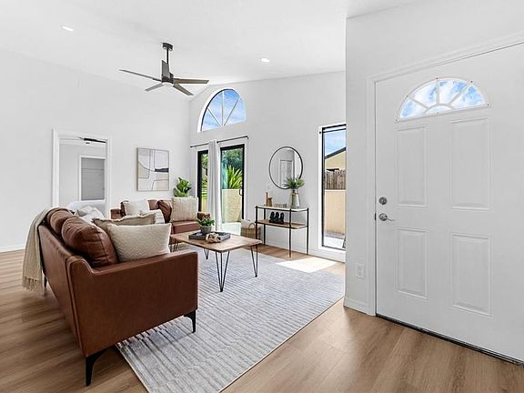 Welcome to this beautiful Completely Renovated 3 bedroom 2 bathroom property featuring a BONUS FLEX ROOM with a Skylight a NEW Roof 2021, AC 2017, Brand-New Flooring & Large pane sliding doors and wall to wall windows throughout the property that give this home a bright and airy feel allowing the natural light to flow all around! 739 Golden Sunshine Circle is move in ready and has been renovated from the ground up, showcasing 14-foot ceilings, and all-new luxury vinyl laminate flooring. Four sets of sliding doors and a skylight in one bedroom add even more brightness and an airy feel. Inside, you’ll find recessed lighting throughout and energy-efficient ceiling fans in every room. The primary suite delights with its own courtyard access and a spacious walk-in closet, while a guest room opens directly to the fenced backyard. The designer kitchen features quartz countertops, soft-close glass-front cabinets with under-cabinet lighting, and new stainless steel appliances, along with sliding doors to a private courtyard. Both bathrooms are fully updated and include sleek LED-lit mirrors. Outdoors, enjoy a large fenced backyard with an open covered porch and a big driveway in the front with ample parking. Situated in the heart of Orlando, this home offers quick access to SR-408, I-4, and SR-417, and is close to Engelwood Elementary, Stonewall Jackson Middle, and Colonial High, making commuting and schooling convenient.