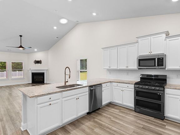 Nestled within the desirable Forestbrook Estates, this like new , beautiful 3 bedroom plus office/flex room home welcome you with modern vinyl flooring and soaring, smooth ceilings. Enjoy comfort throughout the year with new ceiling fans installed in every room. The spacious living room, complete with a cozy fireplace as a main focal point, offers an ideal setting for entertaining guests and enjoying relaxing movie nights.The kitchen boasts stylish recessed lighting, elegant granite countertops, a generously sized pantry, and sleek stainless steel appliances, including an upgraded smart oven/air fryer double oven. The master bedroom provides a private retreat with a large walk-in closet and an en-suite bathroom featuring double sinks and a modern glass-enclosed walk-in shower, while the remaining bedrooms also feature plenty of closet space and easy access to a full bath. The versatile flex room, enhanced by beautiful French doors, can easily serve as a formal dining area or a convenient home office. Step outside to the covered back patio, equipped with sunshades and a ceiling fan, creating the perfect spot for your morning coffee. The fully fenced backyard features an expansive patio, ideal for grilling and outdoor gatherings- with the peaceful setting of a wooded view. Equipped with a washer/dryer, this home is truly, move in ready! Residents of Forestbrook Estates can take advantage of fantastic community amenities, including two swimming pools, a playground, and a community garden. This home offers the convenience of a short 15-minute drive to the vibrant heart of Myrtle Beach, with its diverse array of shopping, dining, entertainment, and local beaches. You won't want to miss this. Schedule your showing today!