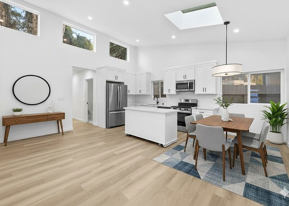 - High vaulted ceilings with skylights flooding the living area with sunlight