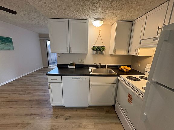 This cute one bedroom apartment located on the ground level is just what you've been looking for! The entire apartment just got a fresh coat of paint and new LVT flooring. The kitchen overlooks the living area, really opening up the space and there's plenty of cabinet storage. The living area can be set up with a small bar top table to eat at. The bedroom is good size and has plenty of closet space. The bathroom is large and has a nice full size vanity.