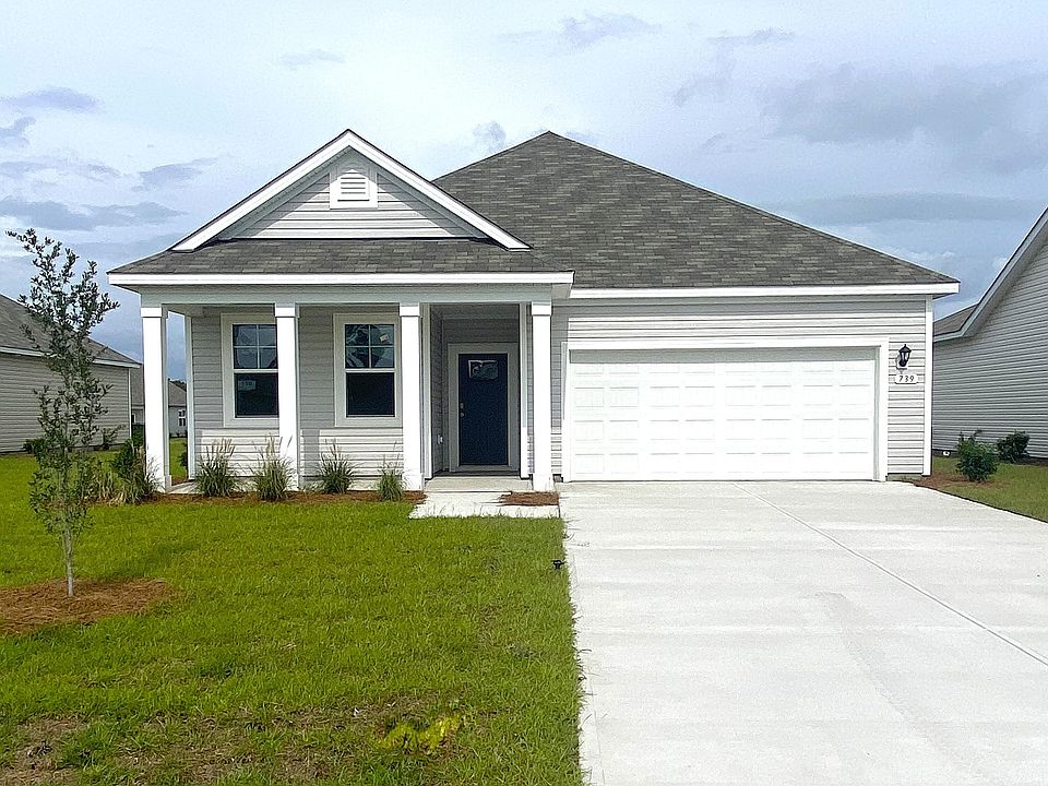 This thoughtfully designed one level home is one of our most popular floor plans! With an open concept living room, dining room and kitchen, this home is bright, spacious, and designed for entertaining guest or comfortably interacting with family. The kitchen features granite countertops, 36'' cabinets, a spacious pantry, stainless steel appliances including a refrigerator, and island with breakfast bar! Your primary suite awaits off the back of the home with a spacious walk-in closet and master bath with double sinks, a linen closet and 5' shower. Two secondary bedrooms are at the front of the home providing separation from the primary suite. Enjoy the coastal air from the back porch as you wind down in the evening! 2 car garage with garage door opener. This is America's Smart Home! Each of our homes comes with an industry leading smart home technology package that will allow you to control the thermostat, front door light and lock, and video doorbell from your smartphone or with voice commands to Alexa.