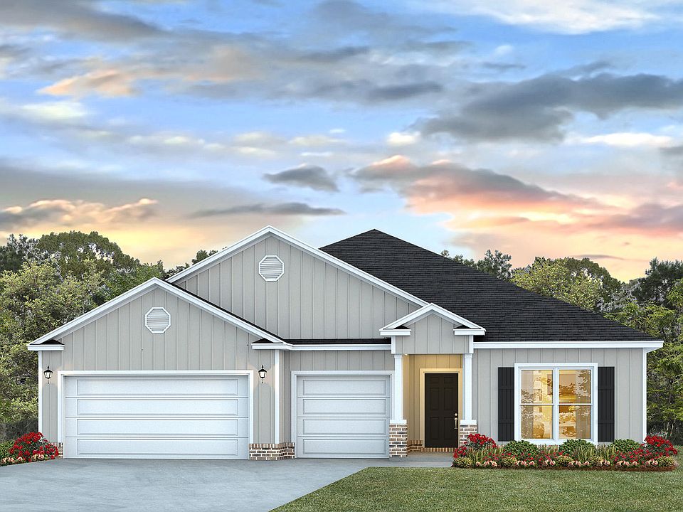 Welcome to 739 Old Ferry Road, a new home floor plan at Holley Grove at Peach Creek in Santa Rosa Beach Florida. This is a waterfront property that will feature the Camden floorplan. This floorplan has an expansive foyer that leads to a thoughtfully designed open concept living space with 9' ceilings. It features four bedrooms and three and a half bathrooms. With approximately 2,800 SF of living space, this home will have EVP flooring throughout, matte black fixtures, a tile backsplash in the kitchen and quartz countertops. The heart of the home reveals a beautifully appointed kitchen, with a center island, upper and lower cabinetry, a walk-in pantry and overlooks the great room and an adjacent dining area all illuminated by natural light from the windows. The living and dining areas flow seamlessly, with double doors leading out to a covered back patio. The living, dining and primary bedroom have tray ceilings which give a feel of high ceilings. At the back of the home is the primary bedroom, offering a peaceful retreat with a luxurious en-suite bathroom. The primary bathroom has a vanity with dual sinks, a walk-in shower, soak tub, and a substantial walk-in closet. An additional bedroom with its own bathroom, walk-in closet and dedicated study is thoughtfully positioned for privacy and ideal as a guest bedroom. Two exceptional features of this home are the location and the three-car garage.