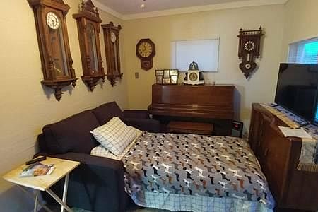 Furnished and utilities paid. Close to the naval base, and Ridgecrest Regional Hospital. A nice front lawn with rose bushes and palm trees, this is a private efficiency apartment, much like a hotel. This place has it's own living room, efficiency kitchen, bathroom, full size bed, private off street parking. It has a small efficiency kitchen so you'll have the ability to make your own meals. It has a double bed and a love seat with a pull out twin size sleeper. This is a single occupancy listing. This listing is for single occupancy. Six month or one year written lease Utilities Paid, Furnished