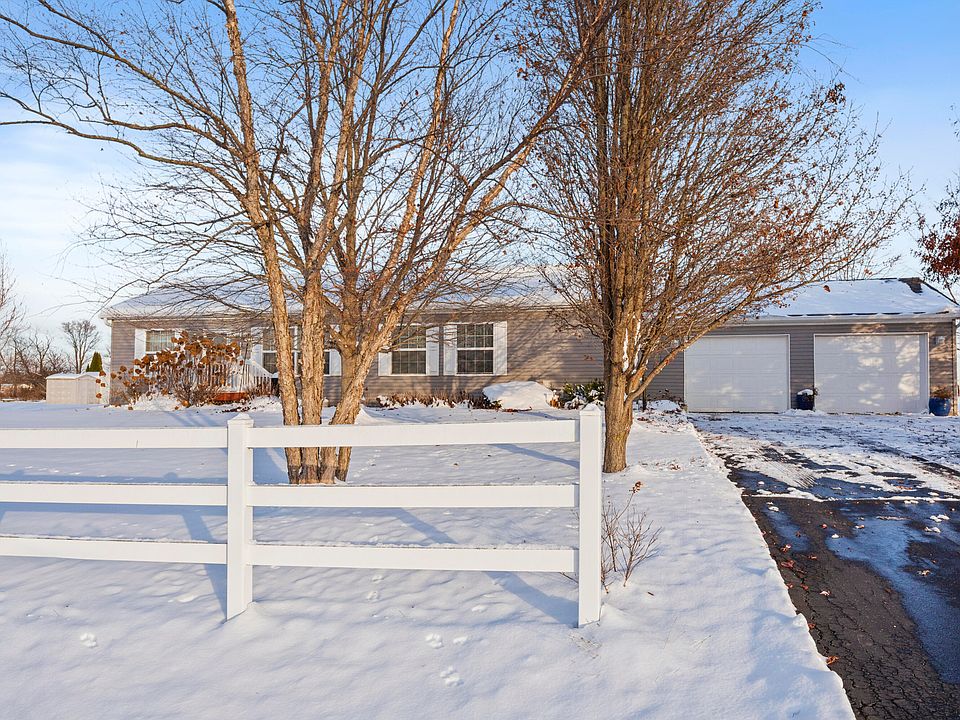 It's not too late to enjoy the holidays or begin the New Year in this spacious, move in ready home! If you're looking for main level convenience, then this is IT! A rural setting on an acre lot with back yard fencing! Once the snow melts, you'll enjoy the beautiful gardening and landscaping that has been cultivated over the years along with the apple and peach trees. The Furnace and AC are newer ('23). A large deck and concrete patio can be accessed from the newer sliding glass door. This home boasts an oversized garage with access to the shed and chicken coop out back. DON'T PASS THIS ONE BY!