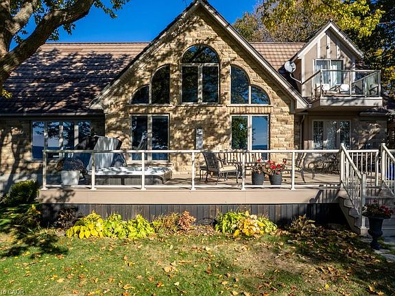 Experience the ultimate in lakeside living! Introducing a rare opportunity to own an impressive executive style waterfront residence in the coveted Sandy Bay community, nestled on the shores of Lake Erie. Set on a private, hilltop lot, this exquisite home offers unmatched lake views and direct lake access with your own private waterfront. Enjoy panoramic water views from nearly every room. Inside, discover a spacious and elegantly appointed layout. The entertainer’s kitchen is a chef’s dream, highlighted by high-end, built-in SS appliances, quartz & slate countertops, light cabinetry, and an open-concept design with vaulted ceiling, that creates an elevated, inviting atmosphere that feels both luxurious and comfortable and flows perfectly into the spacious dining area complete with a wall of windows & gorgeous water views . The sunlit living room seamlessly opens through sliding glass doors to a sprawling deck, where you’ll find a relaxing hot tub—a front-row seat to vibrant sunsets and tranquil starlit nights. The primary suite is a serene retreat, boasting a spa-inspired 5-piece ensuite, generous walk-in closet, cozy fireplace, and a private cantilevered deck balcony—perfect for savouring sunrise coffees or evening breezes overlooking the shimmering lake and Lake Erie’s Grant Point. Additional features include an attached double garage, beautifully landscaped grounds with armourstone tiered garden, with huge flag stone steps & interlock walkway leading to the welcoming front porch to the flag stone steps and walk way to the water. Fully fenced back yard offers security for children and pets in the lakeside yard. For additional peace of mind you will enjoy the comfort of a whole home automatic back up generator. Work from home? Take note: high-speed fiber optic cable internet connection is available. Experience the perfect blend of luxury, comfort, & breathtaking natural beauty—schedule your private tour & make this exceptional waterfront oasis your new home!