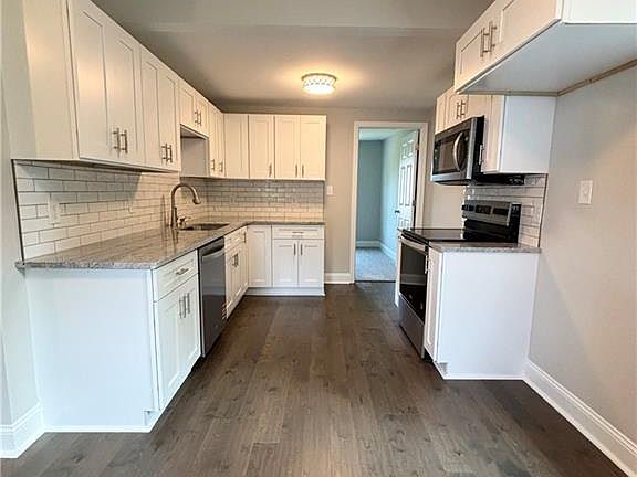 Granite countertopsTile backsplash in kitchenFreshly painted wallsNew fixturesNew stainless steel appliances