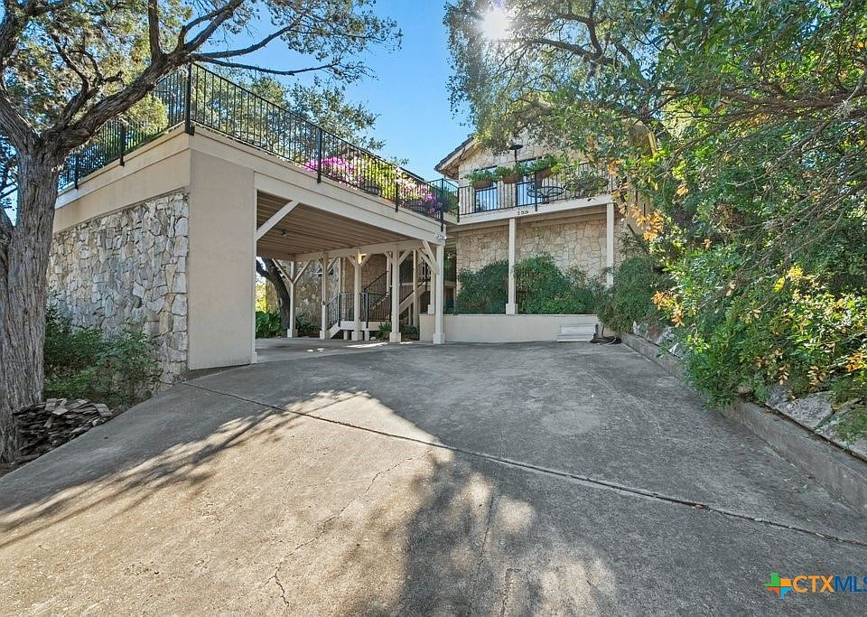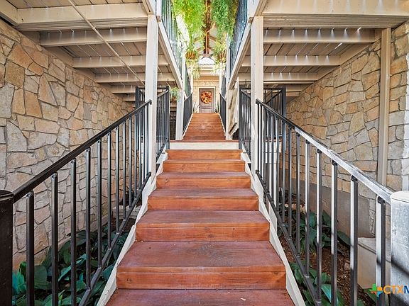 Interior doors are Masonite safe and sound solid core. Thirty six windows give every room beautiful, natural light and great views. The living area and the primary bedroom have wooden vaulted ceilings and rock wood burning fireplaces. A large second level deck overlooks downtown New Braunfels. Great for entertaining, relaxing, viewing wildlife, watching fireworks on July 4th and New Years Eve. Xeriscaped yard has no lawn, just beautiful gardens. The house has three air conditioning zones and low e windows. The carport has two storage areas and a rarity in Texas- a large basement area for more storage.