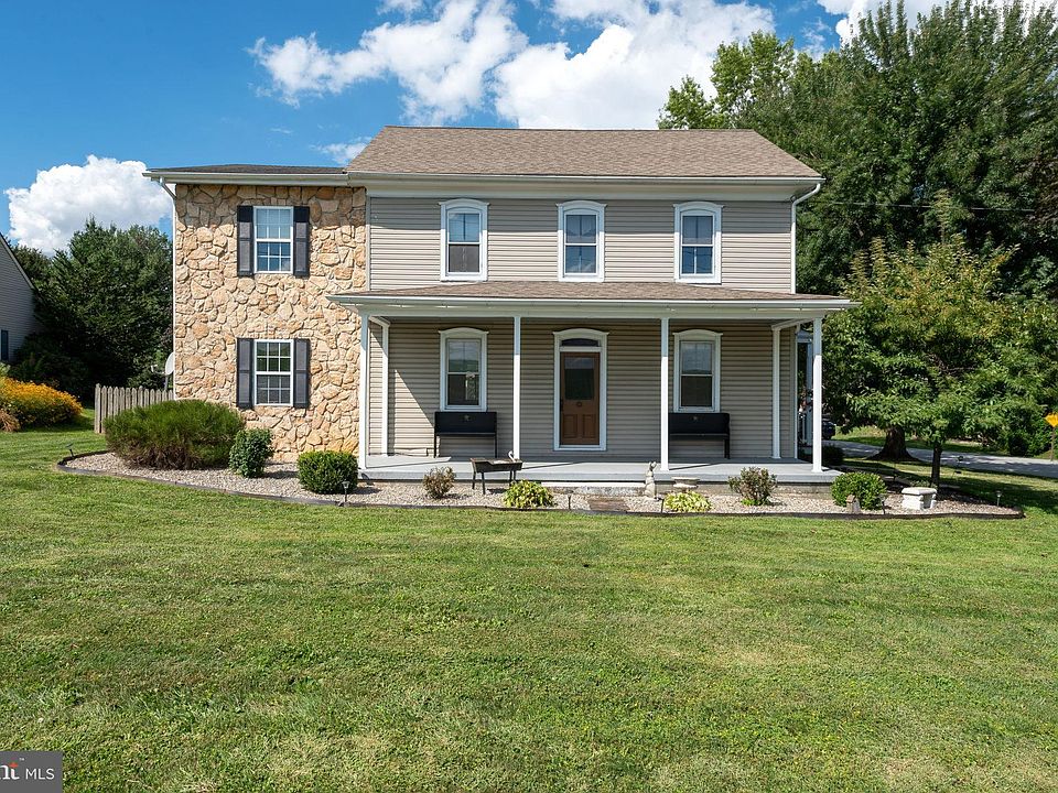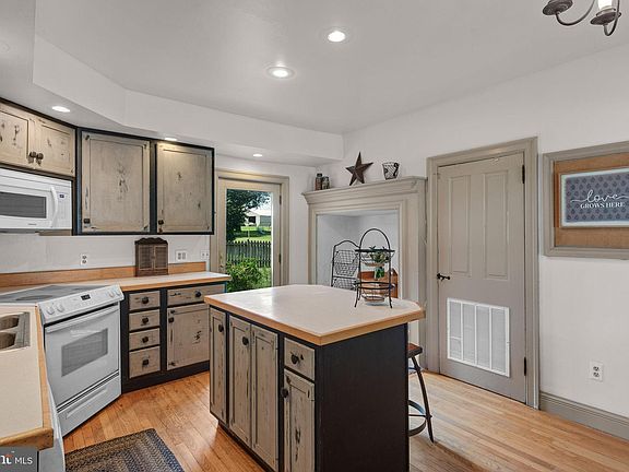 This historic farmhouse has so much to offer: vintage touches combined with modern comforts and so much space! The large eat-in kitchen features the hearth from the original cooking fireplace, perfect for holding seasonal decor. The kitchen island provides additional prep space and seating. An addition to the home enlarged the recreation room on the main floor and 2 bedrooms on the second floor. The recreation room can be used in multitude of ways: tv room, game room, library, craft room and has plenty of room for an additional dining space. A formal living room and half bath complete the main level. Dual stairwells (one off the kitchen, one off the living room) lead to the second floor where you will find three large bedrooms, full bath, and convenient laundry room. The farmhouse basement provides plenty of storage along with a sound dampening booth that the owner constructed for practicing the drums. Parking is a breeze with the driveway that is located off Strawberry Lane (which is a no outlet street). Enjoy evening walks and bicycle rides within the small neighborhood with little traffic. This home comes with not one, but two porches (one has the expected porch swing) and iconic farm views. The fenced in yard is ideal for relaxation, play, gardening, and pets. Walk up the road to purchase fresh produce or visit the local butcher shop. Don't forget to visit the local cafes or the YMCA, both of which are just a short trip. As an added bonus, the sellers are offering a home warranty. Digitally staged photos provided for inspiration. Like all old homes, this one is full of quirks and custom features, including a sidewalk that goes nowhere (but once upon a time, it led to a barn). Come visit and experience the charm of this historic home for yourself.