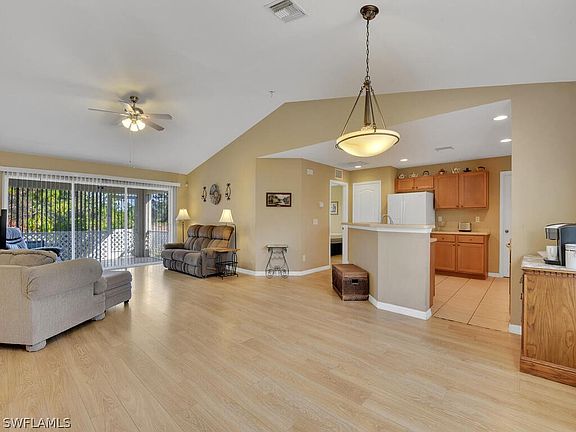 Great opportunity to own a 3 bed, 2 bath 2 car garage home in a growing location. This home has been well maintained. The Kitchen overlooks the Dining and Living area which boast of wood cabinets and tile/laminate flooring. Sliding doors lead to the screened lanai and fenced backyard. Large master bedroom and ensuite. The split bedroom floorplan gives you maximum privacy with two beds and bath on the other side of home. Home comes fully applianced including dishwasher, refrigerator, range, washer and dryer. Home is pre-wired with an alarm system. Minutes from SR 82 and close to schools, restaurants, entertainment, airport and worship. Perfect home for your family or to use as an investment property. Come and see this home today!