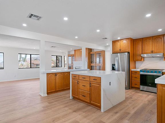 A truly exceptional home with everything you've been looking for!This beautifully remodeled 3-bedroom, 2-bath home offers 1,819 sq. ft. of thoughtfully updated living space with all the right touches. Enjoy gated front and rear courtyards that provide wonderful privacy, charm, and seamless indoor-outdoor living. Resting on a highly usable 48,000+ sq. ft. lot, the property is fully perimeter-fenced and cross-fenced, ideal for horses, with ample room for corrals, a small arena or round pen, recreational areas, equipment, or future structures.A long, wide driveway leads to the backyard, offering excellent access for horse trailers, RVs, or other large vehicles. Multiple storage sheds with electrical and a full workshop with a roll-up door provide abundant space for projects or the potential for additional living or barn conversions. The lower portion of the property also has both water and electrical access for added flexibility.Located on a quiet street in the sought-after Western Hills Ranchos, this home has been extensively upgraded. Improvements include new interior paint, smooth ceilings (no popcorn), premium flooring, recessed lighting, exterior fixtures, Corian kitchen countertops, upgraded outlets and GFCIs, new kitchen and bathroom fixtures, a new toilet and lighting in the front bath, stainless steel appliances, new hardware throughout, HVAC inspection and repairs, and two swamp coolers in good working order and winterized for the season.The attached 2-car garage offers generous storage, and the versatile bonus room between the kitchen and garage featuring finished walls and ceiling makes an ideal creative studio, mudroom, or workspace with direct courtyard access. The backyard is perfect for entertaining, relaxing, and taking in the beautiful desert landscape and views.This is the one you've been waiting for: thoughtful upgrades, incredible space, privacy, equestrian-friendly zoning, and endless potential all in one exceptional property.Buyer to verify all information to their own satisfaction. Buyer is advised to independently investigate square footage, lot size, permits, zoning, intended use, utilities, systems, and any restrictions. All information deemed reliable but not guaranteed. Agent and broker make no warranties; buyer to conduct their own due diligence.