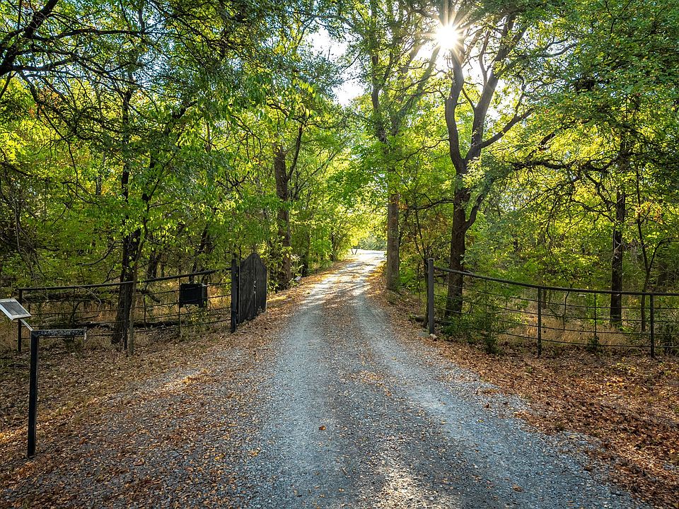 Welcome to your private oasis. A tree lined entrance opens up to a beautiful pond, further up is a custom house with luxury finishes you need to see to appreciate. The large barn has an attached apartment consisting of a kitchen, living space, bedroom and bath. The 20 acre property also has a second barn for storage, a cute potting shed and pergola for relaxing under. The main house features cathedral ceiling living room, floating fireplaces, interior stone walls, wood floors, chefs kitchen and extensive patios in front and back of the house. This property has it all and is just waiting for a new owner to return it to is full potential. There are some repairs needed and all repairs will be the responsibility of the buyer. The main house is approx 3340 sq ft and the barn apartment is approx 1480 sq ft. The property has well water and is located outside city limits so no city property taxes. All this just 8 mins from Grandpappy marina on Lake Texoma and 7 mins to Eisenhower State Park.