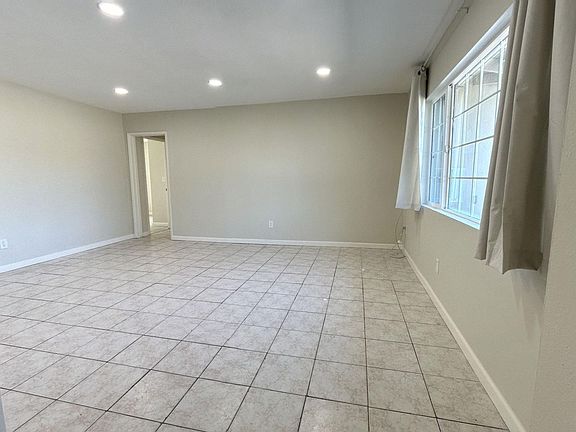 This spacious 3 bedroom 2 bathroom home is located on a large lot in the city of Highland. Fully fenced with dual driveway and single car garage, this home has tile throughout. Wall units are located in each bedroom and living room to keep you cool, wall heater to enjoy in the winter. Kitchen includes updated cabinets, microwave and stove/oven with lots of cabinet and counter space. Bedrooms are all good size with large closets. Laundry hook ups located in the garage. Living room and kitchen includes updated recessed lighting. Don't miss out to make this house your new home!