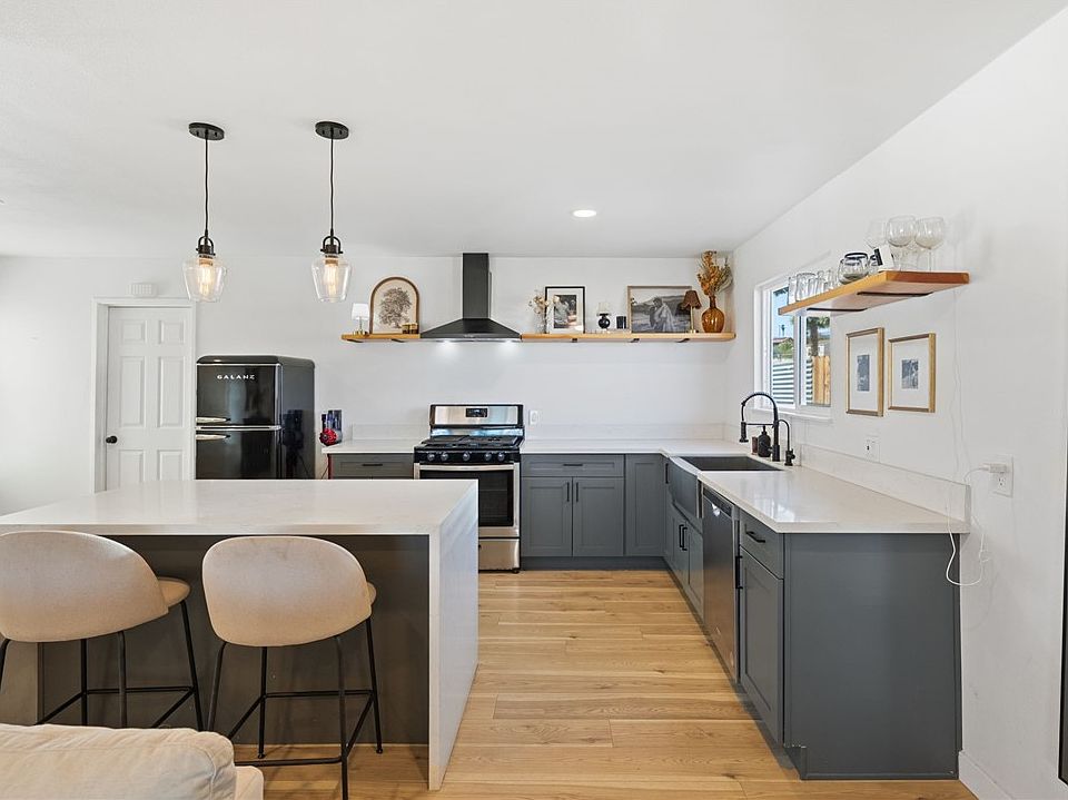 Whether you’re seeking a peaceful desert retreat or the perfect family home, discover the best of Twentynine Palms living at 73904 Playa Vista Drive, a beautifully remodeled and thoughtfully upgraded desert oasis. This 3-bedroom, 2-bathroom home spans 1,258 sq. ft. and is fully turnkey for its next owner. From the new laminate flooring and recessed lighting to the expanded sliding door off the living room, newer toilets, custom mirrors and lighting, every detail has been updated with quality and care. The open-concept kitchen showcases quartz countertops, a luxury waterfall island, and modern fixtures, including an oversized sink. Both bathrooms have been completely renovated with custom tile work and contemporary finishes. The seamless flow between the kitchen, living area, and back patio makes entertaining effortless, inside or out. Step outside to enjoy open desert views, enhanced privacy with a galvanized steel and wood fence, desert-inspired landscaping, and a custom paver wall surrounding the nearly half-acre lot adorned with towering palm trees. The spacious backyard offers the perfect setting for stargazing, relaxing in a hammock, or gathering around the fire pit. Modern comfort meets efficiency with central air and heat, managed by Google Nest, ensuring year-round comfort. Conveniently located near downtown Twentynine Palms, Tortoise Rock Casino, and just minutes from Joshua Tree National Park, this home embodies the desert lifestyle - stylish, serene, and truly unforgettable.