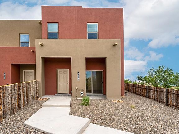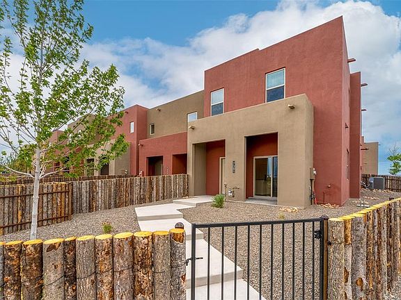 New, gated community conveniently located with easy access to 599. 5 min to SF Golf Course, walking distance to Swamp Park and walking trails. Granite countertops in kitchen and baths, SS appliances, 5 burner gas stove, Central air and tankless water heater. This is one of the few end units available. Main living area is tiled. Guest bath has steel tub. Luxury vinyl in baths and laundry. Blinds included. Home comes with 2-10 Ltd Home Warranty + Exclusive 1-yr Builder Warranty. 2 Car garage. Owner suite has walk in closet. Built to Build Green NM level energy efficiency. Pics are of model - actual finishes will vary.