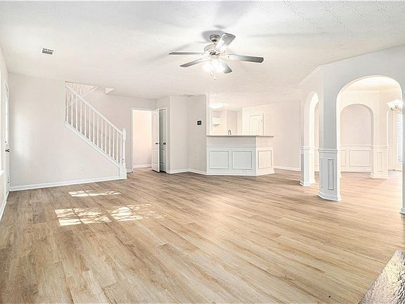 7391 Garnet Rd, Jonesboro, GA — Sassy, Stylish & Seriously Move-In Ready! Get ready to live your best life in this fully remodeled showstopper. New LVP floors, plush carpet, sleek quartz countertops everywhere — this home is polished perfection. The wainscoting and column accents on the main level bring architectural swag, while the brick veneer façade gives all the curb appeal. Inside, you’ve got a separate but open dining room flowing into a bright, open concept living room ? kitchen. The kitchen is pristine with white cabinetry and stainless appliances — cook, mingle, brag. Upstairs, the oversized owner’s suite is a retreat: soaking tub + separate shower, and a walk-in closet that might just make you forget your storage unit. Two more bedrooms upstairs, a ½ bath on the main, and a large back patio perfect for grilling, chilling, or summer soirées. Plenty of natural light, high ceilings, fresh interior paint, and a neighborhood with walkable sidewalks (dog + me time guaranteed).