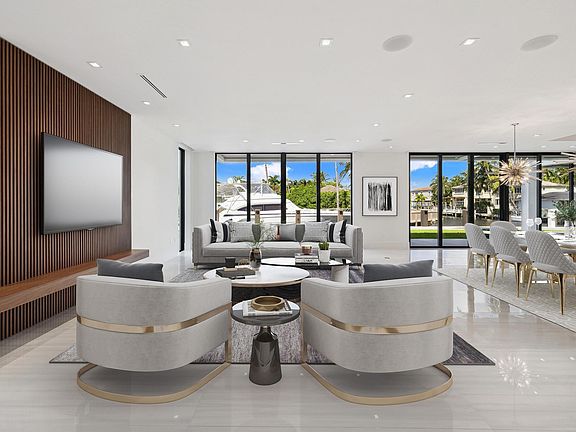 Bay Colony Waterfront paradise! Brand New, MOVE IN READY - Certifcate of Occupancy Received 12.1.23 Minutes from the ICW w/TWO fully equipped docks and 155' of water frontage. This 6 bed/6 full/2 half bath home w/Den, Game Room & 4 car garage is a masterpiece of intelligent design & sumptuous finishes. Spanning 2 floors (w/elevator) each bedroom has a balcony, ensuite bath & walk in closet. Gourmet kitchen is artfully equipped with a huge island, butler's pantry, Jenn Aire appliances & generous bar. Massive glass showcases sparkling water views, a heated, saltwater pool & entertainment deck. Planned with the highest standards for quality, innovation & energy efficiency; each garage has a charging station & the home is safeguarded by a 40KW generator. Boca Bay Colony's finest crown jewel Bay Colony is a supreme location as close to downtown Boca Raton as it is to downtown Delray Beach, with a short 5 minute drive to the beach. With 155' feet of water frontage, this exceptional home site features two docks and is adjacent to a turn basin, making it a superior location to navigate even larger vessels. The concrete docks were raised 2' feet to be level with the pool/entertainment deck, equipped with both water and electric service. The heated, saltwater pool features a sundeck and heated spa. The back yard is secured from the front yard with decorative, aluminum fencing. Jenn Air appliances are installed in the gourmet kitchen which features a butler's pantry, quartzite counters with full backsplash and a complimentary mixture of white lacquer & Italian linen cabinets. The summer kitchen is covered and adjacent to the main kitchen, stubbed out to be customized to the buyer's personal preference. 36' x 72' porcelain slabs are installed on the first floor in white w/a touch of greige accent. The 2nd floor features engineered hardwood.