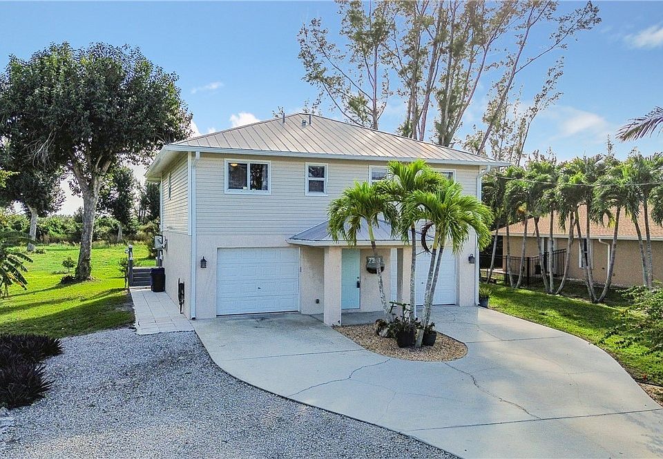 BACK ON MARKET--Finance Fell Through--Be mesmerized by this Island Charm Home nestled in beloved Bokeelia! This 2-story property built in 2003 elegantly embodies our coveted Florida Lifestyle--bringing outside inside. This home has been extensively remodeled in the last few years to include new a/c system; generator hookup; high end vinyl flooring; and a balcony deck now screened in and under roof. And YES that's right--there IS an ELEVATOR to access it all! Wheelchair Friendly Home!! This home features an open floorplan with plenty of natural light via oversized windows! The 2 heavenly bedrooms upstairs are adjoined by a newly finished bathroom; dual sinks & step-in shower. Entertain in this well appointed Kitchen, & casual Dining Room that overlooks the groves outback; & sensational Living Room. Perhaps an afterdinner drink and a slice of Key Lime Pie out on the deck under the celestial spill of lucky stars across the night sky. The downstairs bonus suite has taken the form of a private Oasis. The eye-catching finishes of the bathroom are sure to please and there's an easy access walk-in shower. Plus two separate attached garages and a workshop out back! The navigable waters of this area are an adult playground and the fishing is world class! Don't miss Matlacha, St James City and the sandy, sun-drenched beaches of SWFlorida. We invite you to come and see for yourself!