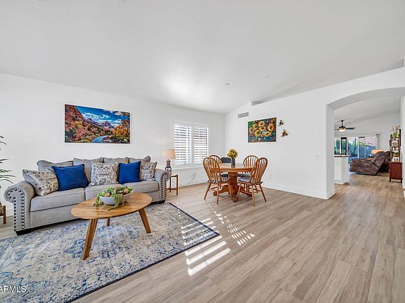This beautifully updated 3 bedroom, 2 bath home offers 1,652 sqft of light & bright living space in the desirable gated community of Los Portones. Renovated in 2022, the home features wood-look porcelain tile throughout the main living areas, with plush neutral carpet in the bedrooms. The open kitchen flows into the family room, highlighted by a charming stacked stone wood-burning fireplace. A large sliding door leads to the inviting backyard with pavered patio and multiple seating areas perfect for year-round enjoyment or easy ''lock-and-leave'' living. The spacious primary suite includes a freshly remodeled ensuite bath with a brand new oversized walk-in shower. With stylish updates and a prime North Scottsdale location, this home is the perfect blend of comfort and convenience
