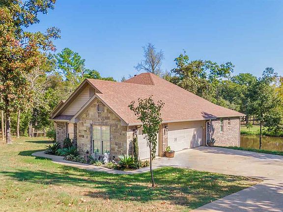 Custom home built 2014, tasteful selections, top of the line finishes, built ins, wine nook, Fishermans dream with stocked lake, close to Gilmer and Longview on one acre of land, three car garage, three bedrooms, split master with office. Let's get moving!
