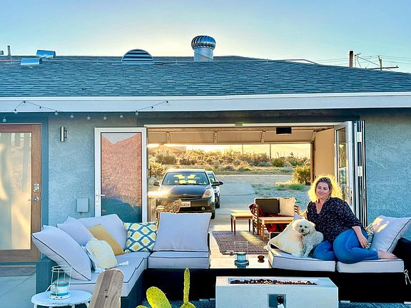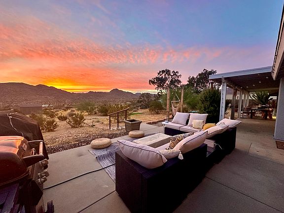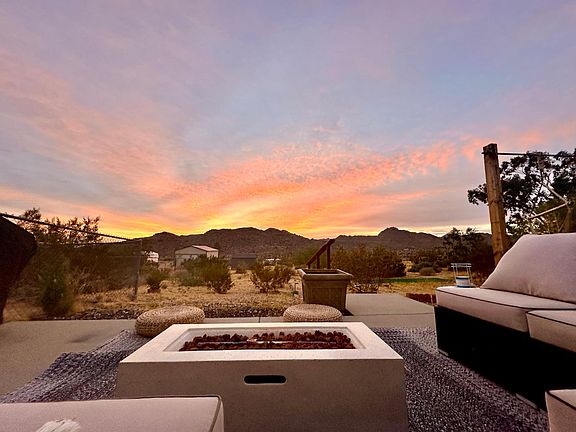 Located in South Joshua Tree Upper Friendly Hills, one of Joshua Tree's premiere neighborhoods. 6-minute drive to the park 5-minute drive (short bike ride or walk) to downtown Joshua Tree 10 minute drive to campgrounds 2000 sq. feet on an Acre of fenced-in land. Stunning wraparound views of the National Park. No neighbors to front or back. Rent includes all UTILITIES + upgraded wifi. Remodeled w/ polished cement floors, brand new Birch cabinets, stone counters, and Stainless steel appliances. 2 kitchens. The main kitchen is stocked with 16 16-piece dish set, mugs, cookware, Vitamix, a stand mixer, etc. Keyless entry. Solar powered. Nest AC and Heating system. EV charger for electric cars. Furnished w/ contemporary MCM mid-century modern furniture. The house has 2 HDTVs and Apple TV + Roku for streaming. The garage is a stunning entertainment space with a laundry area LG washer and gas dryer, a kitchen with stone counters, a fridge, and a wine fridge. Ten-foot sliding glass doors open up onto the large patio with a fire pit, two BBQs, and an outdoor sectional sofa seating area. Outdoors: Enjoy the birds and rabbits who come to eat morning and night (we will even supply some bird seed to get you started) as you watch sunrises and sunsets in the 2 Hammocks, have dinner at the 8-seater table, or read a book at the many benches and sunning tables throughout the fenced backyard. House is furnished and turnkey. Two living rooms with two sofas/seating areas + the garage/studio space. There are multiple office areas with desks. All bedrooms have memory foam mattresses. 2 Queen beds and 1 Cal King bed. The bedding is Egyptian cotton 600+ thread count and lovely duvets with linen/cotton covers. Amazing hiking and running trails in the area and North Sunset Rd. has spectacular trails that you can walk to. This area cannot be beat and rarely does anything ever come up for rent in this neighborhood. Dogs - will consider dogs. Parking - The driveway is long and can easily fit 4+ cars plus room on the gravel for 2 additional vehicles. Rv okay. EV charger 220 volt off the driveway/garage. NO SUBLETTING. Plz see description. Rent includes all utilities + wifi. Lease - 6 months - 1 year. If UNDER 6 months rent goes up to $3800 per month. If under 2 months - $4200 per month.