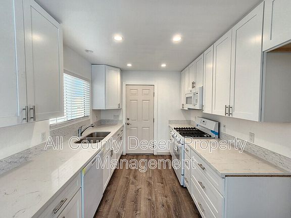 Welcome to Palm Valley Garden! Charming 2BR/1BA unfurnished duplex unit available for long term lease in Palm Desert. This home features a large, hard wood flooring living room area with ceiling fan. Kitchen with quartz countertops and all appliances included! Two spacious bedrooms each with their own mini-split. Private and gated backyard with generous sized driveway and plenty of street parking. Laundry closet with washer/dryer hookups. Tenant to pay all utilities.