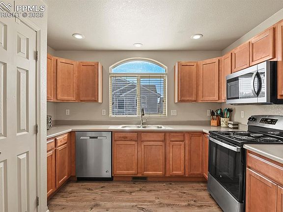 Cozy home in a quaint neighborhood in the heart of Falcon. This welcoming three-bedroom ranch style home is open and airy. All amenities are on the main level, including the laundry and garage access, making daily life effortless. LVP flooring runs throughout the main level, with carpet in all the bedrooms. All the kitchen appliances and washer & dryer stay with the home. For those seeking room to grow, the unfinished basement is a blank canvas, ready for your personal touch. Situated in a walkable community- you're just moments from restaurants and shopping. Conveniently located: 19 minutes to Shriever SFB, 15 Minutes to Peterson SFB, 13 minutes to Powers Blvd. Easy access to Highway 24.