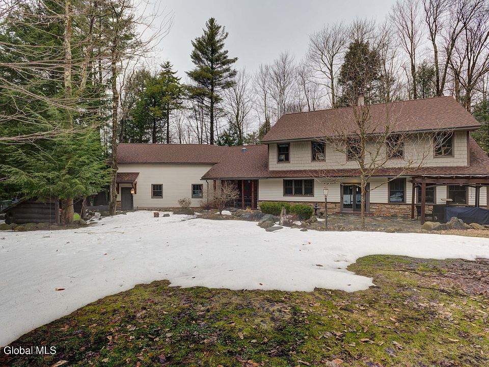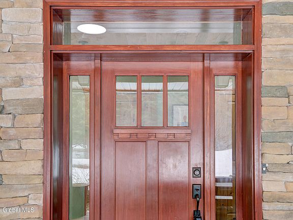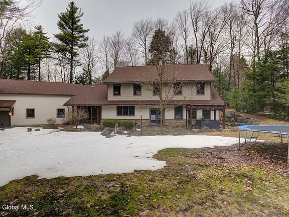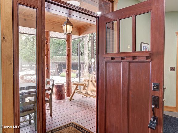 Beautiful custom 5 bedroom/3 bath home with deeded lake access to Lake Nancy. Home is a Certified Green Home with central vac and boasts open concept living area featuring log beams and columns in true ADK style. Spacious foyer with accessible full bathroom and laundry off the back. Stunning kitchen with hickory cabinets, concrete countertops & custom wood bar top. First floor primary bedroom with walk in closet and large bathroom. First floor is all radiant heat & finished deco concrete flooring. 2nd floor features 4 bedrooms, full bath and family room. Attached heated 2 car garage with bonus room upstairs could be another bedroom or rec room. Custom lean to and area with hookup for hot tub enhances the private yard. Galway Schools. Don't miss the opportunity to make this house your home.