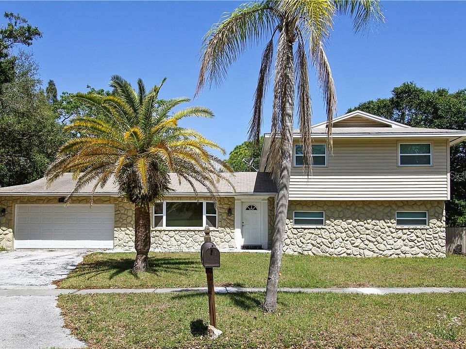 This is a stunning,well updated,oversized home on a wonderful lot in Clearwater. Conveniently located between Belcher and US 19,this location gives you the convenince of a secluded,hidden,quiet neighborhood where children are always out playing in the streets. With a brand new AC system and Roof (Sept 2024) The home itself has carpeting in the upstairs and basement and large tile on the main floor. There is a bedroom with a private bathroom in the basement 3 bedrooms upstairsm one with a small bathroom and one main bathroom. There is a large living room in both the basement that walks out to the backyard as well as on the main floor that abridges the kitchen. The home has a large yard with a small front yard and a spacious backyard.