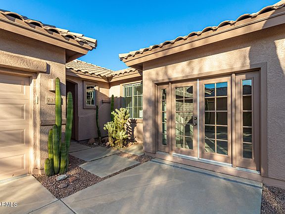 This corner lot property is the perfect blend of comfort and convenience, offering 3 bedrooms, 2 bathrooms, and a spacious layout that is sure to impress. There are tons of great hiking trails nearby with incredible views. The home has brand new carpeting, interior paint, dual flush toilets, stainless steel sink & faucet, microwave, stove/oven and dishwasher. It is clean and move in ready! The master has a shower, tub and dual sinks. There are views of the Superstition Mountains from the front and part of the backyard. The casita at the front could be used as an office or workout room! The home backs to a wash so there is a lot of privacy. There is also a commmunity heated pool nearby included in HOA fees.