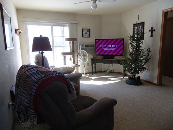 Care free condo living in this main floor, 2 bedroom, 2 bath lower unit. The $150/month condo association fee includes heat, snow removal and lawn care, trash collection, building insurance and maintenance of common area. This unit has a large master bedroom with a private full bath and walk in closet. The spacious living room with patio doors allows great natural light into the room. You will have a view of the park and walking paths to enjoy while chilling on your patio during the warmer months.