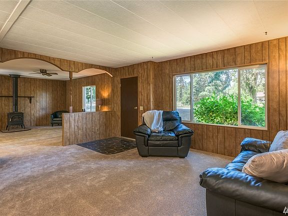 Move in ready. Well maintained 3 bdrm 2bth 1404 sqft home w/a detached shop & 2 car detached carport on .92acres. Open floor plan w/the master bdrm on one side of the house & the 2 guest rms on the other. Upgrades include; windows, carpet, newer natural gas furnace, free standing gas stove, new 3 bedroom septic system, new skirting, new tie downs & the title has been elinminated on the manufactured home. Partially treed property with large evergreens and room for a garden. It's worth a look.