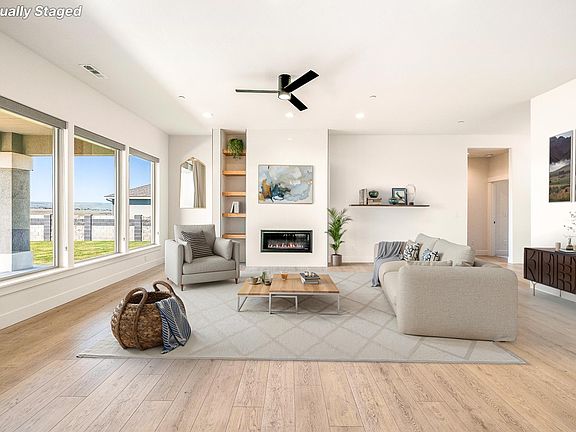 MLS# 283880 Like-new, beautifully maintained home in the prestigious Southcliffe community—one of Kennewick’s most sought-afterneighborhoods. Built in 2021, this modern 3-bedroom, plus office, 2.5-bath home offers elegant comfort, thoughtful design, and an unbeatable location. The light-filled open floor plan features a spacious great room centered around a striking gas fireplace—perfect for relaxing or entertaining. The gourmet kitchen boasts contemporary flat-panel wood cabinetry, a full quartz backsplash, a waterfall-edge island, and upgraded appliances with unique accent finishes. A generous dining nook flows seamlessly to the large, covered patio where you’ll enjoy breathtaking panoramic views—ideal for morning coffee or evening gatherings.The luxurious master suite offers a serene retreat with a spa-inspired bath, complete with a soaking garden tub, walk-in shower, dual vanities, and a massive walk-in closet. Two additional oversized bedrooms and a beautifully appointed full bath provide ample space for family or guests, along with a stylish half bath for added convenience.Other standout features include a dedicated office or flex space, a fully finished 3-car garage, and a large landscaped yard. Located just minutes from top-rated schools, Trios Hospital, Southridge Sports Complex, shopping, dining, and more — this home offers both comfort and convenience in one of the Tri-Cities' premier locations.