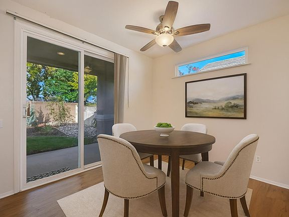 Nestled in the exclusive, amenity rich 55+ active adult community of Sun City Roseville, this beautifully remodeled Meadow floorplan single story home shines with over $40K in recent updates! Enjoy charming curb appeal with new low maintenance landscaping, new exterior paint, updated lighting, a garage door with windows, Ring doorbell, and a covered porch with a decorative glass entry. Popular Luxury Vinyl Plank flooring in the kitchen and bathrooms. Large gathering room with a ceiling fan. Updated kitchen featuring granite countertops, chef's faucet, stainless sink overlooking the backyard, white appliances, plenty of cabinetry, and a dining area with built-in buffet cabinetry. Barn doors open to a 2nd bedroom. The spacious primary suite offers bay windows, a ceiling fan, and a large walk-in closet. The primary bathroom showcases granite countertops, framed mirror, updated lighting, a makeup area, and a shower with seating and assist bars. The secondary bathroom features matching upgrades and a tub/shower combo. Coat closet with shelving. Entertain in the beautifully landscaped backyard with a large, covered patio with lighting, grassy area, and mature trees. Two car garage with cabinetry, shelving, a work bench, and laundry area. New water heater and affordable utilities.