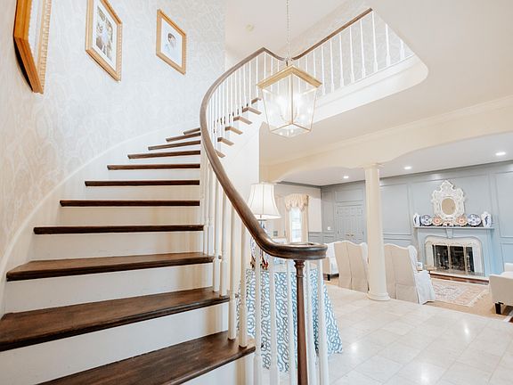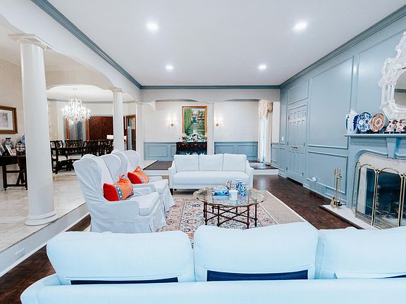 From the moment you step through the marble-floored entry into the formal living spaces, this distinguished residence on Pfafflin Lake in Lakevale Estates sets the tone for elegant, effortless entertaining. The formal living room features a stately fireplace and an adjoining sitting area, creating a warm and inviting ambiance for gatherings or quiet evenings at home. The formal dining room showcases exquisite marble flooring and a custom built-in, adding an elevated touch of sophistication. A beautifully designed kitchen awaits just beyond, complete with a cozy hearth area, breakfast bar, and an island with gas cooktop. Corian countertops, Fehrenbacher cabinetry, and KitchenAid appliances elevate both style and function. A powder room enhanced with hardwood flooring, granite countertops, and a charming sitting area further complements the home’s graceful main-level layout. At the heart of the residence is a remarkable 1,300-square-foot great room. With a soaring cathedral ceiling accented by exposed wooden beams, a fireplace with an elegant mantle, and a full bar finished with copper countertops, a wet sink, and a refrigerator, this space is tailor-made for entertaining and relaxation. Additional main-level spaces include a private home library, perfect for work or reflection. The second floor hosts a spacious owner’s suite, complete with its own fireplace for warmth and character. Two additional bedrooms share a full bath, offering comfort and convenience to residents and guests alike. A unique crow’s nest provides a peaceful vantage point to enjoy serene views of the surrounding neighborhood. The lower level adds even more flexibility with an additional bedroom, full bathroom, and family area—ideal for guests, multigenerational living, or expanded recreation space. Outdoors, the landscaped backyard is an entertainer’s paradise, featuring an alluring in-ground pool and a charming pool house—all set against the natural beauty of Pfafflin Lake.