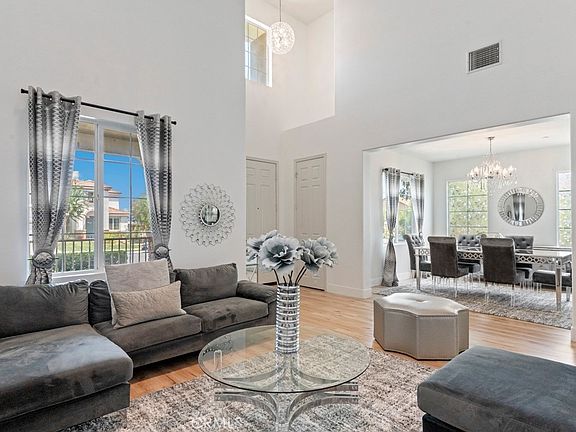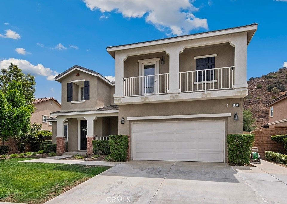 On the lower level, a private bedroom with a built-in fridge, microwave, and full bath makes an ideal next-gen suite or mother-in-law quarters. A convenient half bath is also located downstairs .Head up the stunning staircase overlooking the formal living room. Upstairs, a wide hallway with abundant storage welcomes you. Two of the three spacious guest bedrooms share a Jack-and-Jill bathroom, while the third has its own full bath. One guest room also offers balcony access. The dreamy main bedroom includes a large retreat with a fireplace and its own balcony showcasing breathtaking views. The luxurious en-suite bathroom features dual sinks, a soaking tub, a separate shower, and oversized windows framing mountain views. A very large walk-in closet completes this elegant bathroom. Step outside to a backyard designed for entertaining, with a patio cover spanning the length of the home. The yard is large enough to accommodate a pool and includes side yards perfect for gardening plus a storage shed. With no rear neighbors, you’ll enjoy uninterrupted views of the national forest and serene surroundings. Community amenities include parks, playgrounds, and a basketball court. For an additional fee, residents also have access to the community pool and clubhouse. Additional highlights include a low monthly solar lease and a spacious 3-car tandem garage. This home truly has it all—comfort, style, and unbeatable views. It will not disappoint!