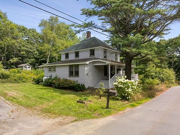 This historic property was formerly the Green Shutters Inn and now includes a completely renovated New England style home with 3 bedrooms and 2.5 baths. Additionally, there are 4 seasonal cabins that provide rental income or a fun spot for family or friends. The home was rebuilt in 2013 from the foundation up, keeping many old features like the classic wood shingled siding, a spacious south facing porch to enjoy all day long and an incredible screened porch for more privacy on the back- all with composite decking. Birch floors throughout with a great room with high ceilings and many windows with lots of light, is a perfect gathering place all year. Double glass doors lead to the outside to the cabins but you can create a patio area that is private and quiet. Private well and quasi public sewer. Located within walking distance to Boothbay Harbor and Barrett's Park this location is private but convenient. Sited on 1.25 acres with potential to divide or keep as is to enjoy the unique setting in Boothbay Harbor.