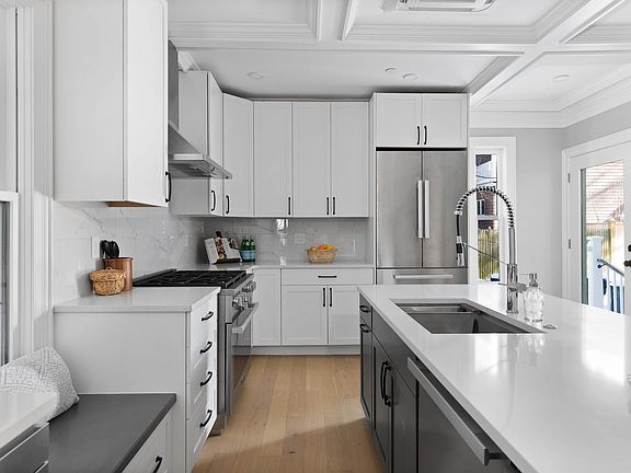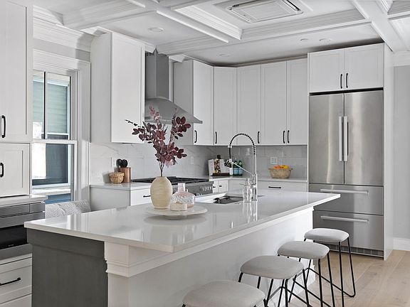 Harvard Square living is here, and you do not want to miss this property! Stretched over 2200 square feet and two levels of living space, you'll love this spacious, and open floor plan. Whether you're entertaining or relaxing, this home is set up for both. Invited by tall coffered ceilings that stretch through your living room and kitchen, complimented by custom hardwood oak flooring, no detail went overlooked. The kitchen is state of the art, equipped with durable quartz countertops and chef's grade Miele kitchen appliances, built alongside shaker cabinets with LED under-cabinet lighting. This smart home also has built-in surround sound speakers throughout and energy-efficient finishes such as HVAC mini-splits, spray foam insulation and Jeld Wen windows. The main floor consists of 2 bedrooms and 2 full bathrooms, one being the primary with a master bath. The tastefully finished lower level has another large living space, bedroom, full bath, and large office space.