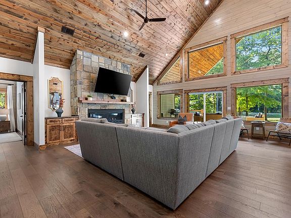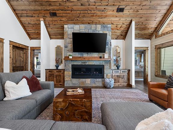 Riverbend Retreat is conveniently nestled in the Pine Lake development next to the Resort clubhouse. Easy access to the clubhouse, pool, playground, and family-style grill. This cabin features 3 King bedrooms with private ensuite bathrooms and walk-in showers, while one of the ensuites also provides a luxurious soaker tub. The bunkroom with private ensuite bathroom also boasts 2 queen beds, a loft with King bed and 2 additional queen beds. Riverbend Retreat sleeps a total of 16 guests! The open design living and kitchen with high ceilings provide plenty of natural light. The kitchen is a chef's delight with stainless steel appliances such as gas range and large refrigerator. Gather around the island with seating for 4 or at the table with seating for 8. Kickback in the living room and catch up with shows or company around the gas fireplace. Step outside onto the covered patio where seating is abundant. Watch the flowing creek or enjoy catch and release fishing at the pond. The hot tub beckons to relax those muscles after a day of exploration and swimming. This cabin is located a short drive from Beaver's Bend State Park or all of the action in Hochatown. Take a look at the video tour and reach out for more info!