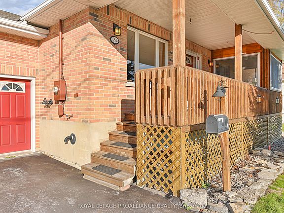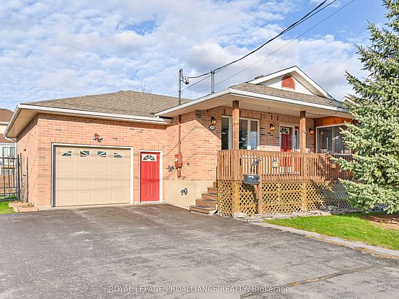 Welcome to 74 Bay Street, ideally situated in the heart of Quinte West. This charming home offers exceptional living space from top to bottom. The main floor features a generously sized primary bedroom with 4 piece en-suite. Second bedroom is enhanced with its own private sunroom and a nice view of the neighbouring park. Another full bathroom accents the main floor. You'll adore the inviting and freshly painted open-concept kitchen, dining, and living area with a very attractive gas fireplace. Another added convenience is the main-floor laundry just off the kitchen. Enjoy views of your backyard while sitting on the covered back porch. The lower level is perfect for entertaining, a kids' play space, or a cozy rec room with another corner fireplace to unwind around. It also includes a two-piece bath and plenty of storage for all your needs.The attached oversized one-car garage offers additional functionality with a rear door, making it easy to access your yard. Children and pets are also safe in the fully fenced backyard. Young or young at heart, this home's location is perfect to enjoy parks, recreation fields, the splash pad, grocery stores and even the Senior Citizen's Club is close by! This property has it all!