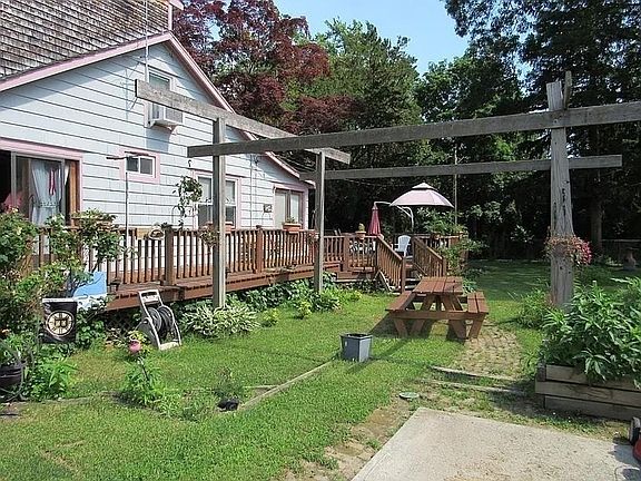 Live the coastal lifestyle in one of Swansea’s most sought-after seaside neighborhoods! This property offers a unique blend of privacy, versatility, and outdoor space just a short walk to the town beach and local boat ramp. Enjoy morning coffee or summer dinners on the expansive deck, entertain in the generous yard, or explore the possibilities of the detached outbuilding—ideal for a studio, workshop, or potential ADU. With access from two different streets, the lot offers flexibility for future plans, expansion, or added convenience. Whether you're looking to create a peaceful retreat, a year-round residence, or something in between, this home presents an exceptional opportunity in a prime coastal location. Bring your vision, creativity and make the most of this unique opportunity in a desirable coastal community. Property sold as is. Tree trunks in the yard are being removed. Seller is putting on new roof!